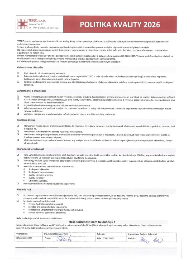 Naša spoločnosť je certifikovaná podľa normy ISO 9001 a UL764